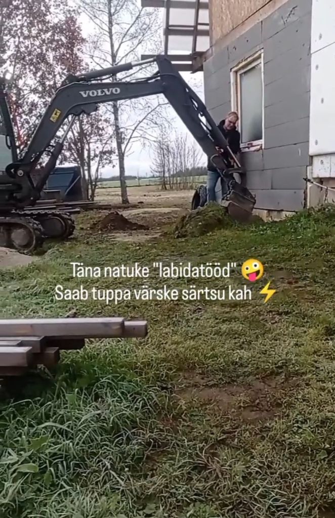 Tegelikult tahan elektritöid jagada. Selline igikestev protsess siin ehituse käigus. Kõigepealt tuleb vool üldse majani saada. Kui me siia kolisime, pidime esimesel ööl, oma asjad ära toonuna, ööbima alevis ema juures, sest me suutsime pimeduses autokäruga elektrikaabli lahti tõmmata. Olin just esikus tuld põlema panemas kui see juhtus. Mis seal siis ikka, proovime homme uuesti. Ehk teisisõnu on maja elektrikapist u 100 m eemal ja vool majja tuli postide otsa tõstetud kaabli abil. Korduvalt sai plaanitud see maa alla kaevata, aga plaanid on plaanid. Postid said läbisõidu teel lihtsalt kõrgemaks tehtud, et mahuks tehnikaga ka liikuma. Nüüd aga oli põhjust tuua abivägesi kaevikukraavi tegemiseks. Naljaga oleks muidugi võinud noorkotkastest pojad kaevama panna, aga meil hakkas kuidagi kahju, teades milline on pinnas. Hoovi kaunistab veel erinevas suuruses kive nagu pärast paagitöid 2015. Nüüd õnneks enam ei saa arugi, kus see kraavikoht täpselt jookseb, kui ei tea vaadata, aga talvel oli see ikka päris plägane. 31.oktoobril 2024 on kopp meil möllamas käinud.