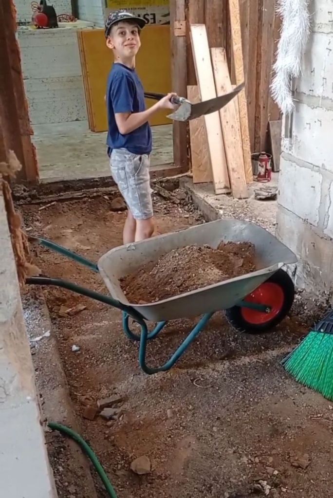 Pildil näha et siis kui üks liiv oli välja veetud mehele meelepärases sügavuses, siis tuli järgmisest hunnikust kraami uuesti peale vedada. Kui miski saab teismelisi poisse närvi ajada siis kindlasti see töö. Aga mis saab olla lapsevanemale suurem rõõm kui kiruv ja pomisev tiinekas.