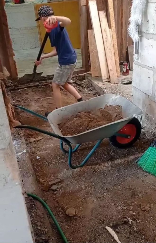 Kaevamine sai alguse niisiis 2023. See oli esimene ehitusega seotud töö, millele ma hea meelega käed külge lõin. Mees ootas, et me poistega tassiksime välja kogu elutoa põrandaplaatide aluse äkki miski 30cm sügavuseks. Vb rohkem, vb vähem. Ma faktikontrolli ei viitsi tagada. Tema tegeles samal ajal pea kohal kõõlumise ja sarikate ülespanekuga. Täitsa tore oli see aardejaht. Leidsime kõikvõimalikke kommipabereid ja paar peotäit legoklotse. Miski hetk hõikas mees, et naelad korjake ka välja seest. Naelad, okei… See on üks väga pikk nael ma ütlen… 20cm kui täpne olla ja kahtlaselt minu sukavarda moodi. 3,5mm pealekauba! Kõige rohkem kasutust leidev. Natukese aja pärast leidus veel teinegi. Sinna mu vardad siis kõik need aastad kadusidki, rotimammad kudusid poegadele sooje sokke.