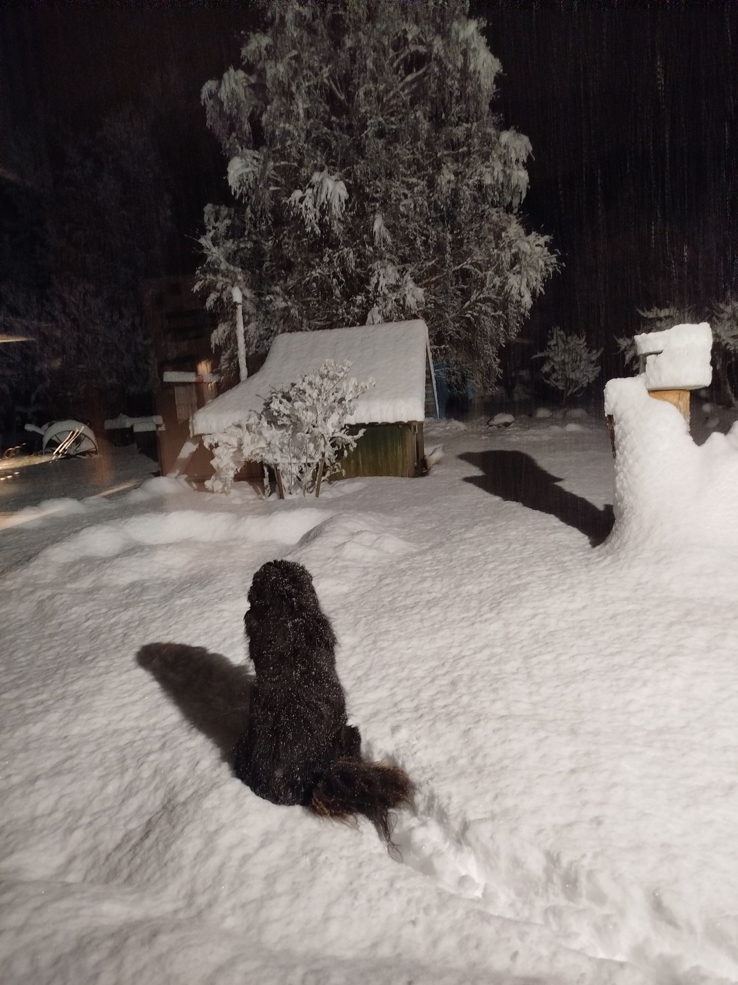 Suur hoov on ilus asi seni, kui hädapärase liikumise jaoks on vaja pea pool km teeradu nügida. Õhtul enne magamaminekut vaatasin netist, et ah, lubavad kuni 10cm, see pole nii palju, hommikul otsin kuurist labida et saan maja esise ära lükata ja auto ümbert, et lapsed väga hullusti lund sisse ei tassi. Ärkasin toas magada nohisenud koera õueküsimise peale natuke enne poolt 6t. Tegin esikus ukse lahti ja vaatasime mõlemad hämmeldunult õue. Koer vaatas uksest välja ja mind, uuesti välja ja mind. Kõhkles tükk aega, kas on ohutu minna. Samal ajal kui mina ohkisin, et issand kus on nüüd visanud alles. Tegin kohvi ja võikud ning pugesin tagasi teki alla, poole tunni pärast hakkan, praegu küll ei lähe labidat otsima. Näis et lund oli 20-25cm. Niipalju siis 10st.