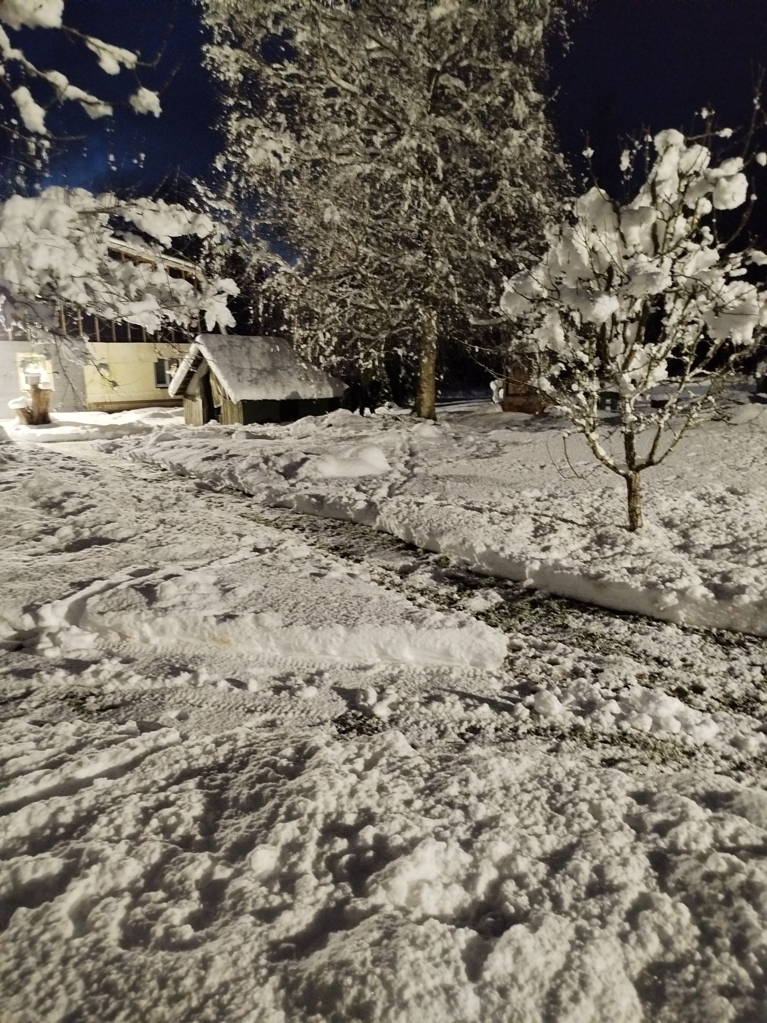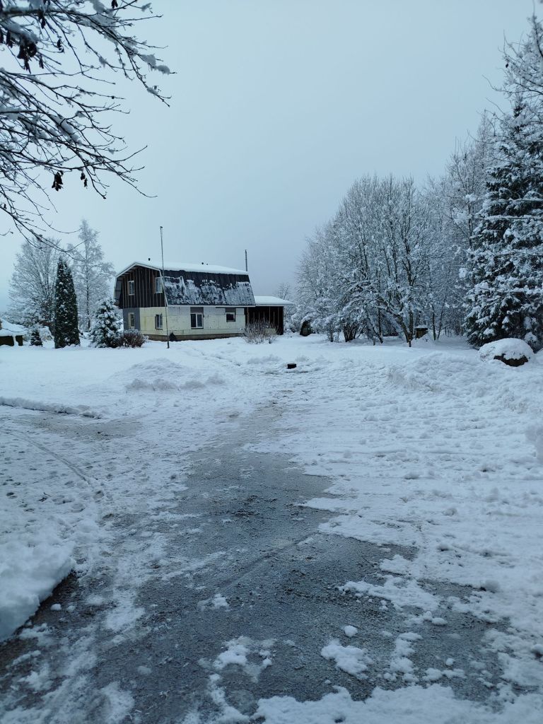 Teadsin et lumepuhur pole talvevalmidusse seatud veel. Kes see enne lund selle pärast ikka muretseb, november alles, kunas see talv enne nii vara tulnud on… On küll tulnud, facebook näitas mulle juba mitu nädalat tagasi talviseid mälestuspilte. Aga nagu ikka – talv tuli ootamatult! Ajasin tööriided selga ning vaheldumisi kirumise, kiljumise ja naermisega sumasin läbi lume kuuri poole rühkida. Lumi kahlas kummikusäärest sisse nii et jalgu enam ei tundnud. Külm, külm, külm on… Kallasin kuuris kummarid tühjaks ja pomisesin, et vaatasin kapis veel villaseid sokke, aga noo kus sellega, et jalga vedada, hea veel et madala säärega sokikesi ei pannud. Natuke otsimist ja leidsin labidad ja hakkasin aga tööle. See nii rahulikult tuulevaikselt langenud, kerge kühveldamine… Ei olnud, eksisin rängalt, sulale maale langenud paks lumekiht osutus parajaks vägitükiks. Tegin küll vaid nö elementaarsed kühvlilaiused rajad kuuri juurest toani, toa juurest jänesteni ja teises suunas väravani ning ümber auto, aga mul kulus selleks terve tund ähkimist. Samal ajal kui koer rullis end hangedes ja nautis sajaga.