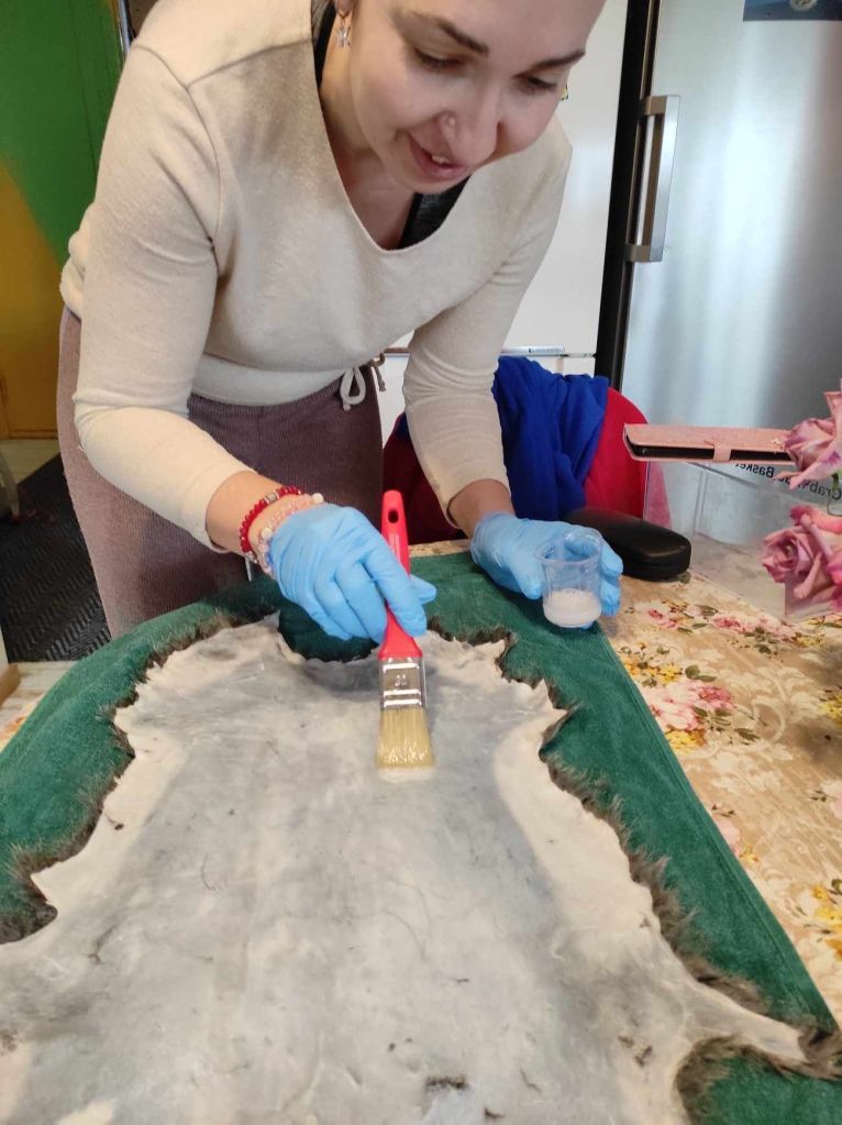 Mis tegite nendega siis, kui neid 46 tk oli, et enam ei ole? Nagu öeldud on meil tänaseks põhikarjana 8 emast ja üks uhke flandria poiss Montimer. Otse välja öeldes tarbime võimalikult suure osa neist ära. See tähendab et liha ja maks lähevad meie endi söögilauale, igast mingid kopsud/südamed sööb hea meelega ema kass ära (mu enda loomad toorest liha ei söö) ja nahk rändab minu käsitöönurka. See oli minu tingimus lihaküülikute kasvatamisel, et ainult siis, kui korras nahad lähevad kasutusse. Selleks tuli esmalt muidugi töötlus selgeks õppida, mees õppis youtube nippidega nülgimise selgeks, aga vot parkimine on küll selline töö, et kui enne mõhkugi ei tea, ei saa seda vist nii õppida, nippide videod, mida olen vaadanud on olnud sellised, et kui nö põhja all ei oleks, ei saaks midagi aru. Ma teadsin inimest, kelle juures saab õppida, aga tema kursuste ajad ei tahtnud kuidagi minu töögraafikuga sobituda, nii et ma teatasin emale, et sünnakingiks läheb õpib küülikunahka parkima ja pärast õpetab mulle ka. Jõuluvana tõi mulle kastitäie selleks vajalikke tarvikuid ka. Ütlen ausalt, et esimesed nahad olid tõsine piin. Tänaseks on mul juba ühtteist nippe tekinud, kuidas enda elu kergemaks teha.