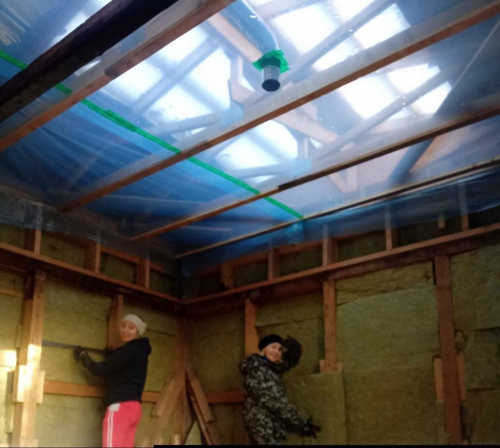 Vanas majas oli elutoa lagi nii madal, et seal ei saanud kuidagi rippuvat lampi olla. Mitte et ma väga vajanuks ka, lihtsalt ikka vahel vaatad poes ilusaid ja ahvatlevaid lühtreid, aga siis meenub pikk mees ja fakt, et kolm on veel peale kasvamas. Kui madalast laest jutt? Nooh, ma olen 174cm pikk ja ma sain lage puudutada sõrmedega. Kuigi… Justnimelt mees oli see, kes tegelikult unistas, et elutoa laes oleks rippuv lamp, aga ta polnud nõus oma pead lakkamatult selle otsa komistama. Elutuba oma põrandapinnalt on uue projektiga sama, mis vanal majal, niipalju et ukseava vist on suurem ja nurk, kus kunagi oli algul ahi, hiljem kamin, on täna pelletikamina kompaktsuse tõttu avaram. Küll aga on laed kõrgemad. Ikka palju kõrgemad. Villatööde ajal tehtud pildilt on seda kõige paremini näha, ülemine “rant” on kõrguseks juurde lisatud osa.