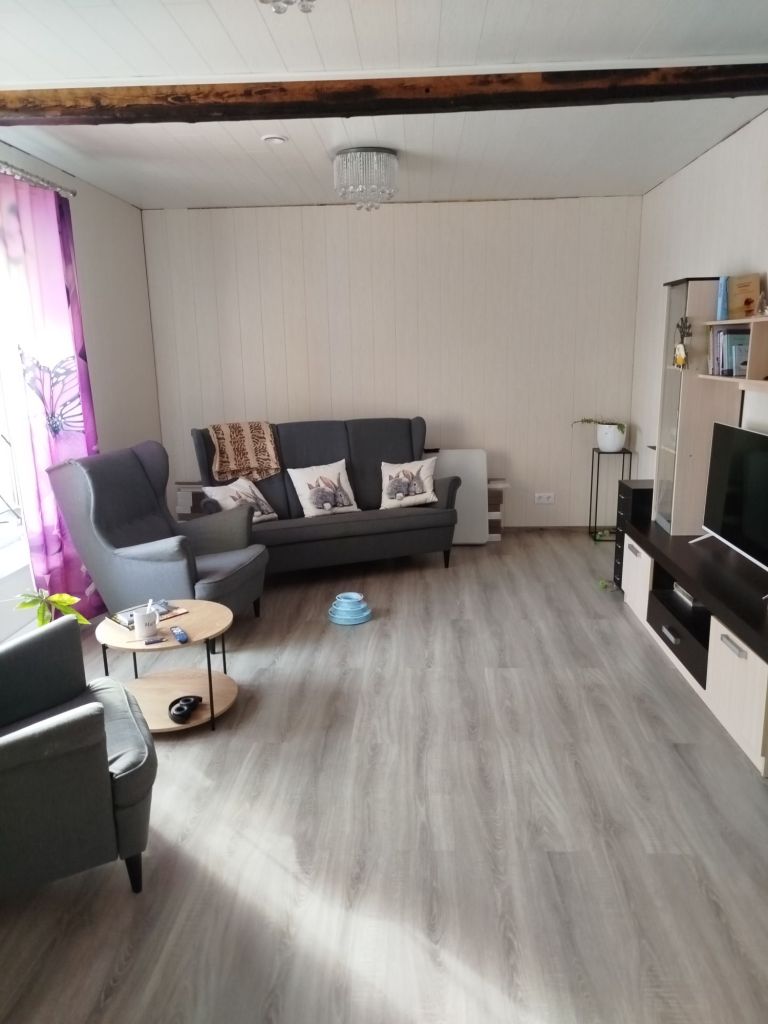 Elutoa pisidetailidest siis laetala mida fotol näha ja mis videos ka läbi vilksab on dekoratiivne. Idee on nähtaval kohal näidata mälestust olnust. Kuigi murdosa sekundi jooksul käis sarnane idee trepikoja seinaga ka läbi, et kataks millegi läbipaistvaga äkki, et mõnus laudissein saatusemärkidega. Aga jäi ainult see palk, mees tegi ta miskite hooldusvahenditega üle ja tõstis lae alla tagasi. Ja see sektsioonkapp oli olemas mul juba enne kui seal toas midagigi valmis oli. Nägin netis, tüütasin meest, et kas talle meeldiks, lasin koju tuua ja lõpuks pidin leppima, et kuigi meil oli mitu telerit, tuli selle kapi pärast ikkagi uus osta. Vana ei mahtunud lihtsalt.