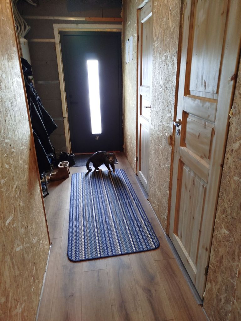Ja siis veel trepikoda, millest ma tol korral küll pilti ei teinud, aga sel hetkel oli seal umbes sarnane lahendus, nagu suve algul sisse kolideski. Enne jõule suutsin mehelt ehituspoes käsipuu-postid ka välja nuruda, need pidada nüüd kuuris lakkimist ootama, et elu nata turvalisemaks muuta äkki. Trepp on päris järsk, vahel on küll tunne, et veeren alla ülevalt.